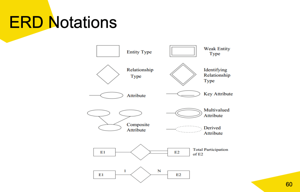 数据建模(Data Modeling)是描述实体(entities)之间的关系,由此产生ER图 (Entity Relationship Diagram),此外实体还有各种属性(attributes),比如学生这个实体,学号是学生的属性。属性类型包括 Simple,Multi-Valued(比如描述校服的多种颜色),Composite(比如可以拆分成城市街道邮编等更具体属性的地址),Derived (衍生的动态的,比如从出生日期衍生来的年龄属性,出生日期在这里属于stored attribute)。